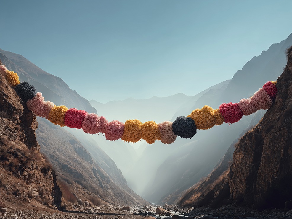 In ‘Tussenwerelden’ komen disciplines samen die op het eerste gezicht mijlenver uit elkaar liggen. De basis van het werk is diep geworteld in het ambachtelijke: scenografie en textiele kunstvormen. Deze klassieke fundamenten zijn door de kunstenaars getransformeerd met behulp van Artificial Intelligence (AI). Het resultaat is een serie zogenaamde ‘liminale beelden’: droomachtige scènes waarin de textuur van oude ambachten en de abstractie van de moderne cultuur samensmelten tot een nieuwe, verrassende werkelijkheid.