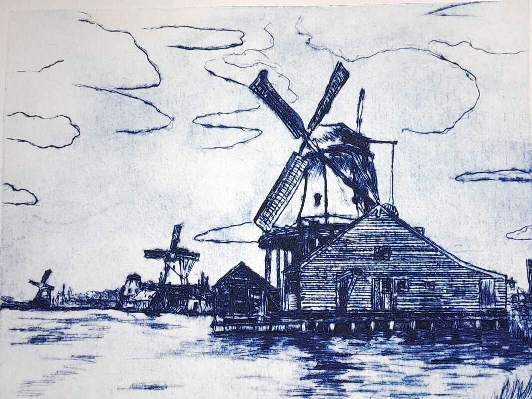 Al 47 jaar werkt McCann vanuit haar atelier aan een vernieuwende vormentaal. In deze collectie vindt u onder andere haar bekende ets van verfmolen ‘De Kat’. Geen vluchtige abstractie, maar een diepgaand samenspel tussen historisch vakmanschap en een spirituele zoektocht naar rust en licht.