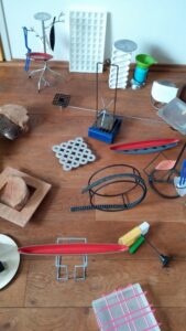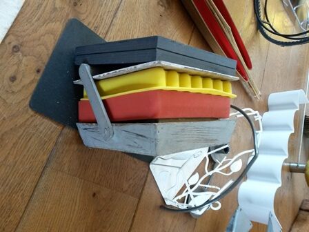 De foto laat een overzicht zien van mijn ruimtelijk werk. Veelsoortig gevonden materialen met een rijkdom aan vormen, worden opnieuw samengesteld, zodat er een (nieuw)autonoom beeld ontstaat.