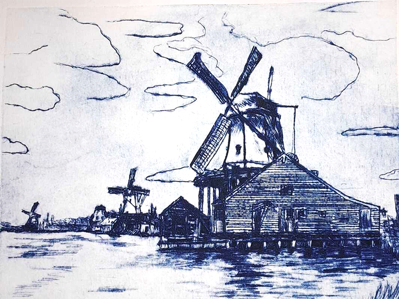 Grafiek en etsen: In mijn atelier aan de Belgischestraat maak ik etsen die diep geworteld zijn in de Zaanstreek. Ik heb een grote liefde voor lokale iconen zoals molens, historische huizen en kerken. Recent combineer ik deze thema’s met invloeden van Delfts Blauw, waarmee ik historisch erfgoed een moderne stem geef.