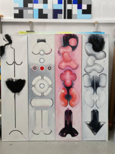 Mijn uitgangspunt is realiteit naar abstractie, ik ga uit van een thema, mijn omgeving is de inspiratie, dat kan heel divers en actueel zijn, bijvoorbeeld de tegenstelling zwart/wit. verder ben ik bezig met de serie “de Body’s”, panelen van 0,50cmx2m.