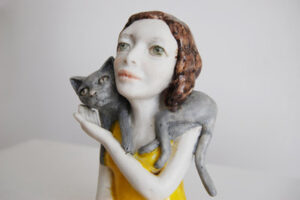 Werkt in atelier aan huis in Westzaan. Maakt beelden en gebruiksgoed van keramiek en textiel.