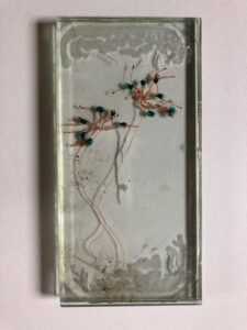 Ik maak o.a. geweven wandkleden, soms in combinaties van glas en textiel of met zaden. Werken die ik combineer met borduren is ook een textielwerkvorm die ik toepas. Materiaal en ambacht spelen een grote rol in mijn werken. Zo zijn er dan ook vele textiele handwerkvormen die ik op een ouderwetse weefgetouw weef of met de hand haak, brei of zelfs kantklos.