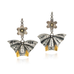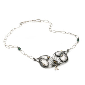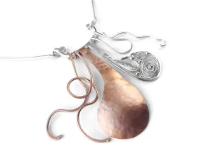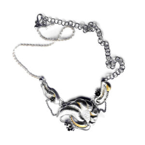 Zilveren handgemaakte unieke sieraden. Organisch gevormde draagbare objecten; ambachtelijk vervaardigd,