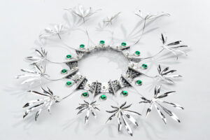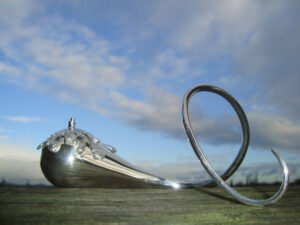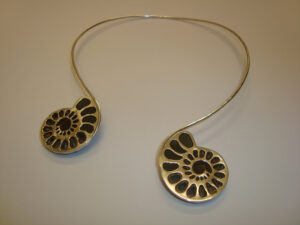 Naast goud, zilver en andere metalen werk ik met edelstenen, strandstenen, schelpen, glas, hout en klei.